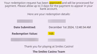 Overall, Smiles Casino appears to be a legitimate operation with proper security measures in place, making payouts relatively safe and straightforward once you hit those minimum thresholds. The payment process seems reliable, though the site's slower performance might occasionally affect your overall experience.